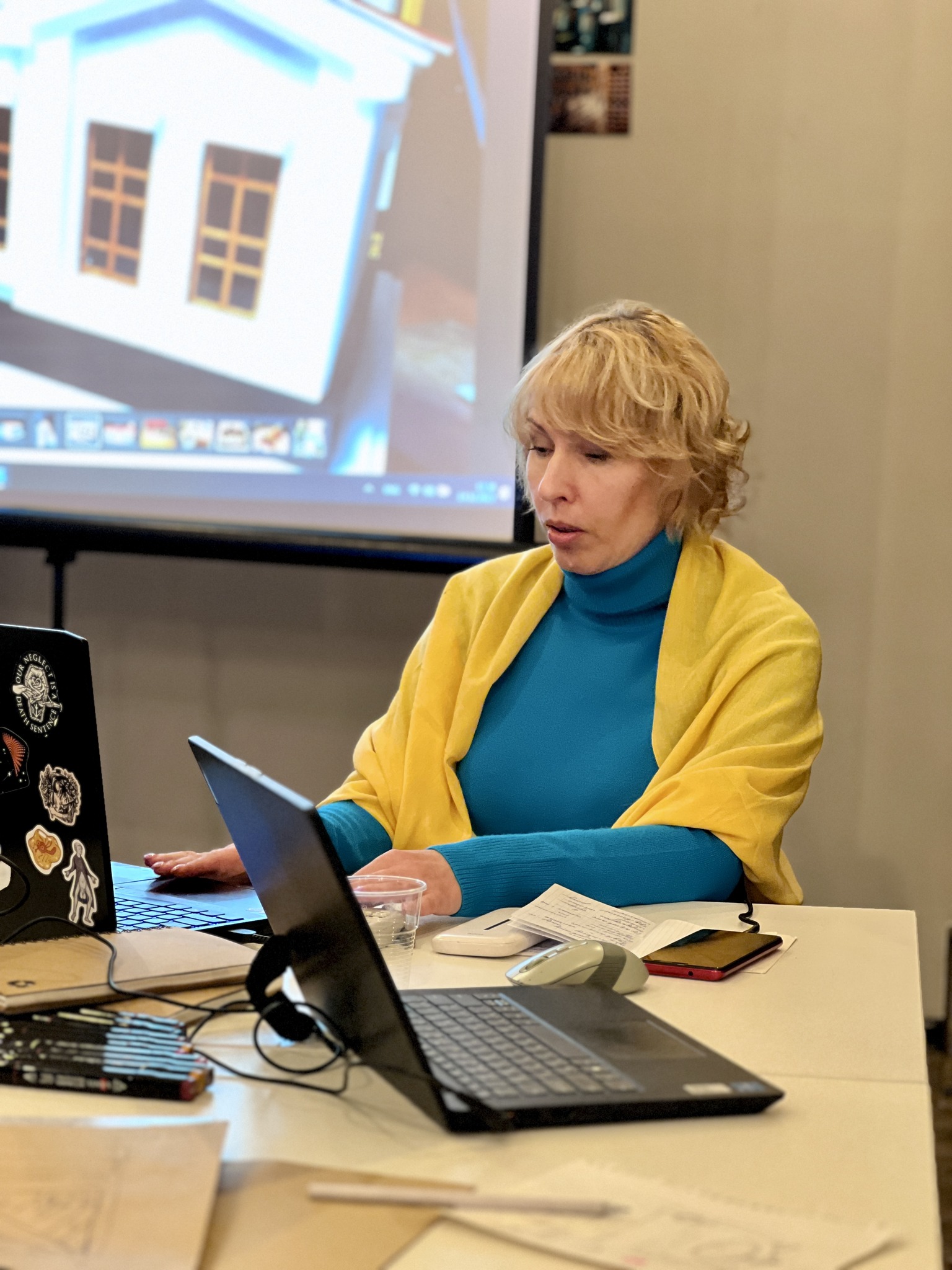 Заключною частиною стала лекція Наталії Цаплиги, архітекторки локальної проєктної майстерні “ЦАН”. Вона розповіла їм про інтер’єрні проєкти, реалізовані нею по всій Україні і в тому числі у Криму! Ще з нею ми розібрали відновлення будівлі, яка була частково пошкоджена в Запоріжжі ракетою росії в жовтні минулого року.